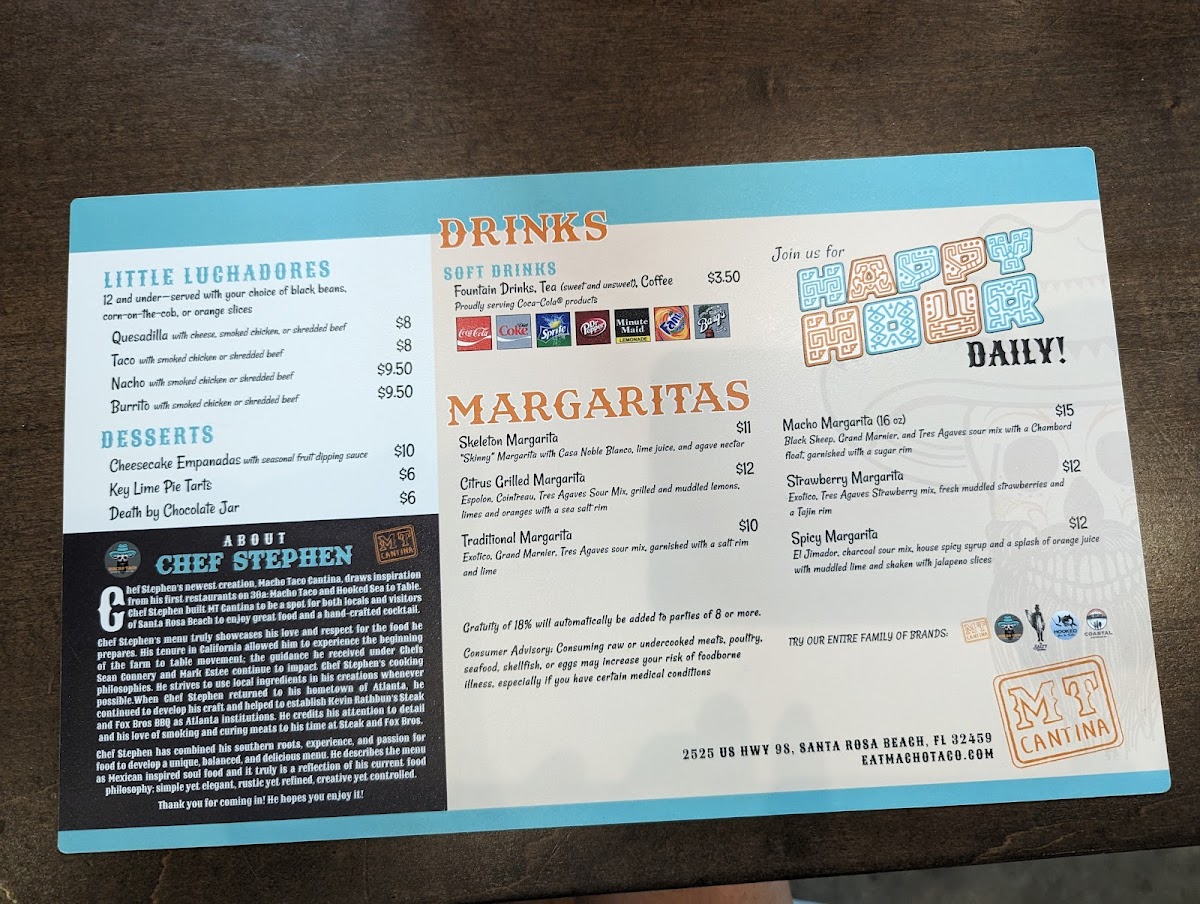 Welcome to Macho Taco Cantina, a vibrant gem nestled in Santa Rosa Beach, Florida, where authentic flavors meet a laid-back atmosphere. The menu is a celebration of tantalizing Tex-Mex cuisine. Start your culinary adventure with the Guacamole & Chips for just $10, featuring house-made guacamole that's creamy and freshly crafted. For a twist, try the Queso & Chips, a delightful blend of creamy house queso with a zesty scotch bonnet relish, perfect for dipping.